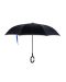 Durable and smart umbrella. Double cloth, C-handle and solid fiber glass frame. Pongee. Reverse closing function so it can dry in upright position when not in use.